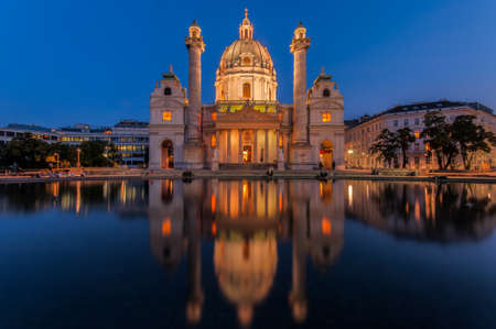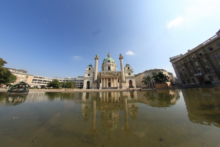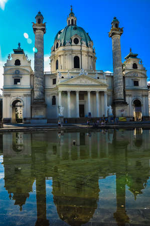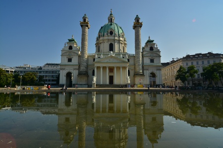 St Charless Church in Wien, Austria Church reflect on water in afternoon
