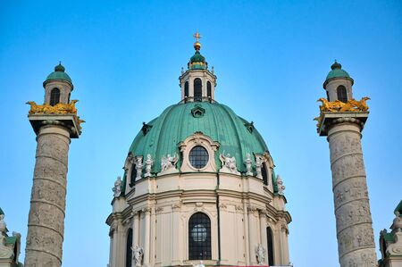 The St. Charles's Church (German: Karlskirche) is a church situated on the south side of Karlsplatz, Vienna. It is one of the most outstanding baroque church structures, and boasts a dome in the form of an elongated ellipsoid.