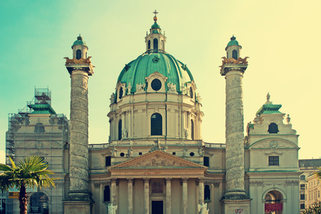 VIENNA, AUSTRIA - APRIL 25, 2018: Wiener Karlskirche - an outstanding example of the Viennese Baroque style