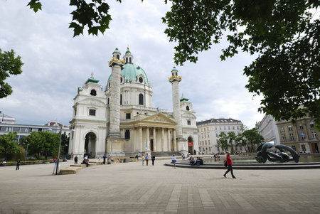 Vienna, Austria - August 29, 2013; Baroque church Karlskirche located on Karlsplatz in Vienna, Austria
