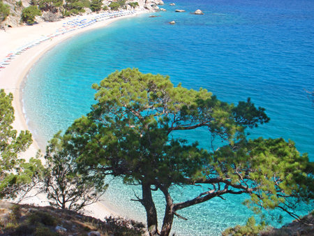 Paradise Beach. Sea horizon and rock. Greece. High quality photo