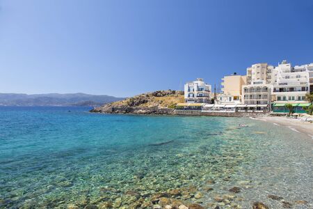 Image of Kitroplateia Beach and promenade right in the center of Agios Nikolaos. Crete Greece.