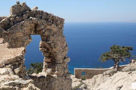 Beautiful view from the Church of St. Tsambika on Rhodes Island, Dodekanes, Greece. Sea View from all sides of church area
