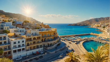 Picturesque Coastal Village With Colorful Houses and Clear Waters in Greece on a Sunny Day