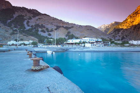 Greece,Crete,Agia Roumeli,View of harbour at dusk