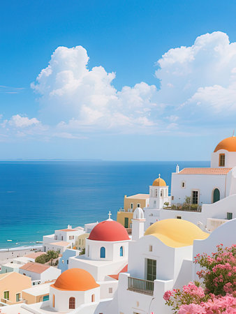 White architecture on Santorini island, Greece. Beautiful summer landscape.