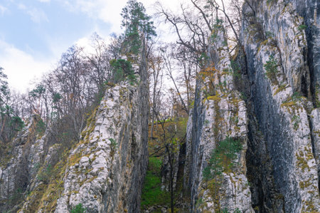 Rocks in the canyon of the Bijela river or the cliffs of the canyon of the stream Bijela voda, Karin Gornji - Croatia (Stijene u kanjonu potoka bijela voda ili Bijela rijeka)