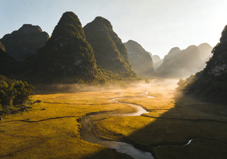 Beautiful landscape of karst mountains and river in the morning