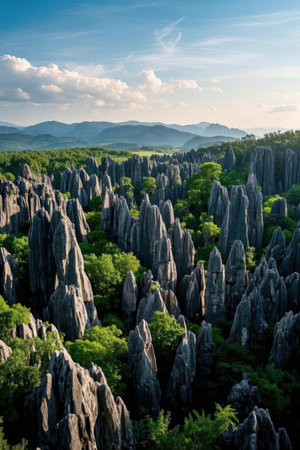 Panoramic view of Yunnan's stone forests