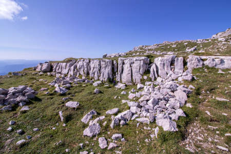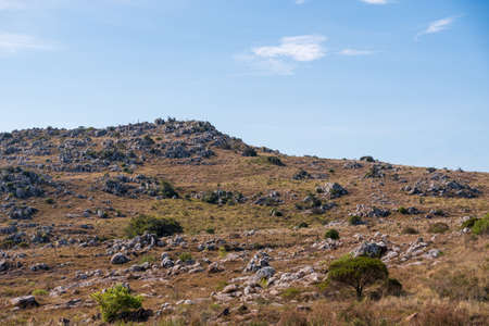 Rows of stones and rocks on dry hill of Dugi Otok island in Adriatic Sea, Croatia