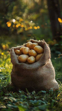 Fresh potato on the sack, ripe potato harvest of potatoes agricultural products for cooking