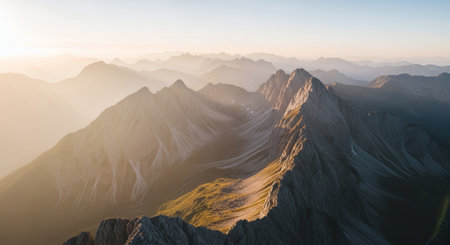 Aerial view of the mountains in the morning. Landscape of the mountains.