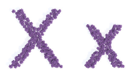 Concept or conceptual set of beautiful blooming lupine bouquets forming the font X. 3d illustration metaphor for education, design and decoration, romance and love, nature, spring or summer.