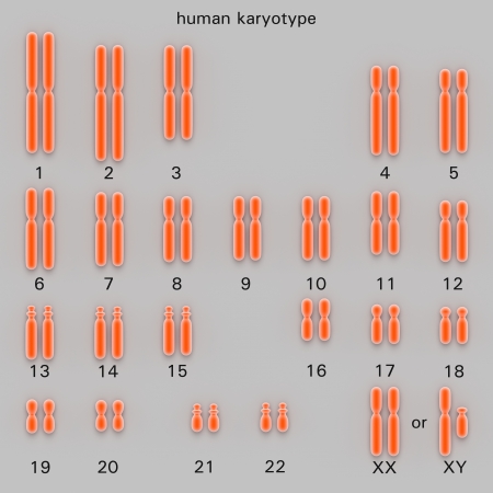 Scheme of normal karyotype of human somatic cell 46XX and 46XY