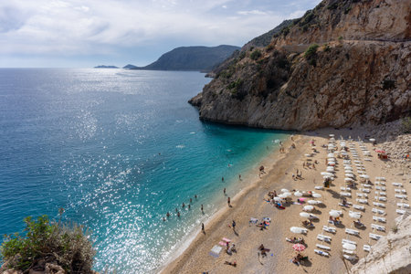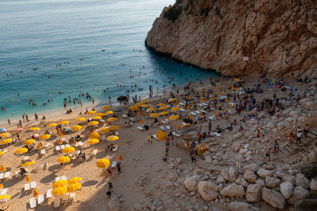 Kaputas Beach, Kas Antalya Turkey - August 5, 2024: Kaputas Beach is a small beach just near hilly area.