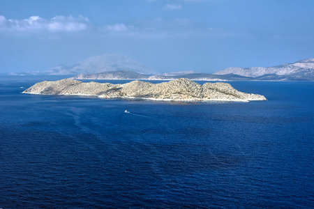 Nature, aerial seascape view and vintage beach holiday concept - Mediterranean sea coast and islands in summer, yacht cruise travel experience