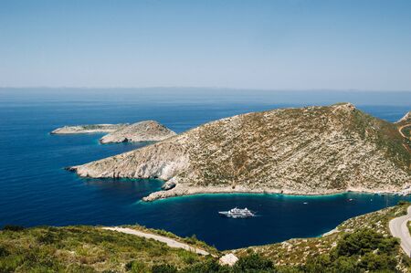 Porto Vromi on Zakinthos Island.Sights of the Zakinthos Island. Best beaches in Greece. Yachts and sea.