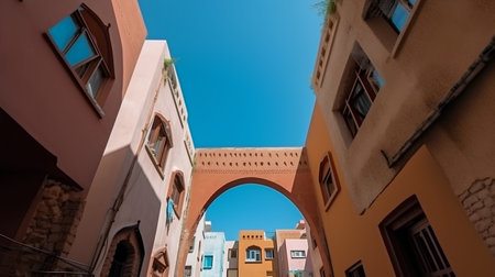 Beautiful view of street with typical arabic architecture in Asilah. Location: Asilah, North Morocco, Africa. Artistic picture. Beauty world
