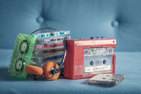 arrangement cassette tape blue. High quality photo