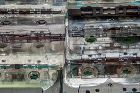 Background image from two stacks of audio cassettes. Close-up