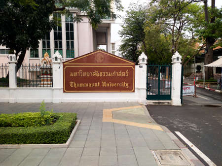 BANGKOK THAILAND-17 MARCH 2021:Label of Thammasat University.