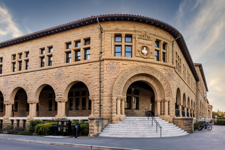 Campus buildings and hallways of the Stanford University, USA. Stanford, USA - September 11 2018.