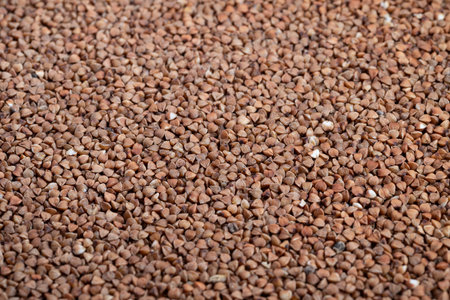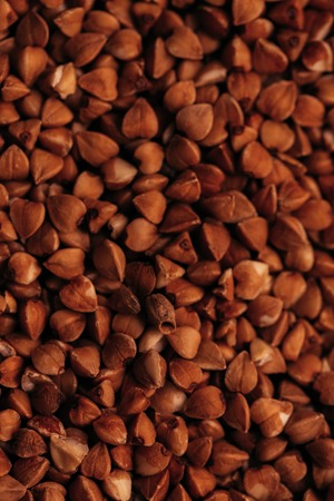 Buckwheat grain closeup, food texture and cook book backgrounds