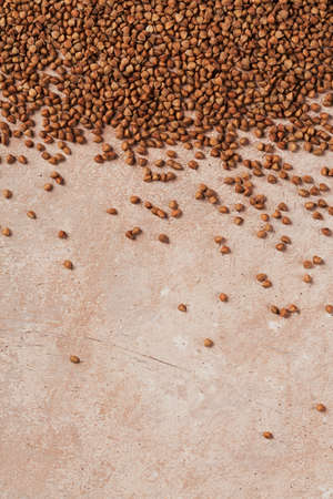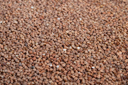 Roasted buckwheat grains background. Dry brown buckwheat groats.