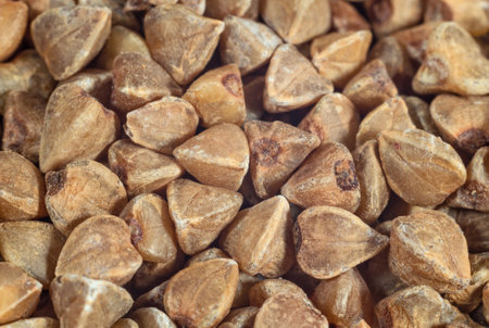 Dry seeds of buckwheat, texture of buckwheat, agricultural dried products, healthy food.