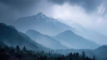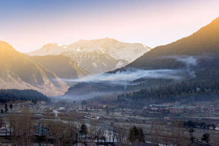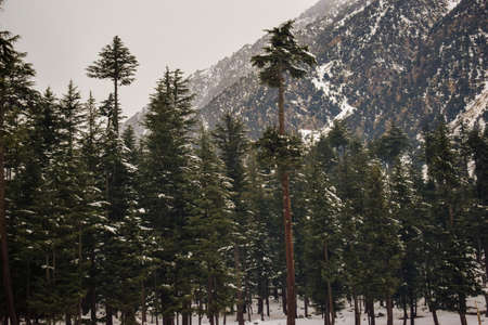 Landscape view of kashmir mountains in winter season. near pahalgam, kashmir, India