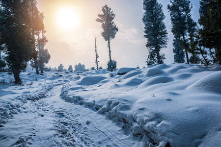 The winter scene in Aru Valley near Pahalgam, Kashmir, India.