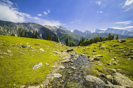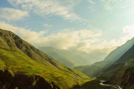 Beautiful valley of hilly area and mountains in india. Beautiful destination for tourists to travel and mountaineering on Himalayas mountain range in Asia.