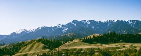 Beautiful mountain landscape with blue sky and clouds, Kyrgyzstan