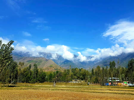 Beautiful valley of hilly area and mountains in india. Beautiful destination for tourists to travel and mountaineering on Himalayas mountain range in Asia.