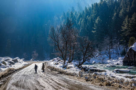The winter scene in Aru Valley near Pahalgam, Kashmir, India.
