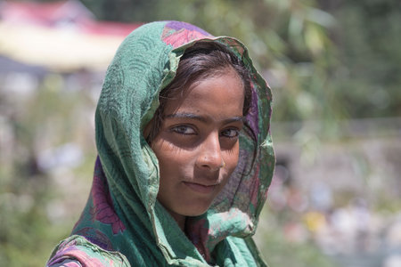 MANALI, INDIA - SEPTEMBER 16, 2014: Unidentified local young girl, outdoor in Manali . The majority of the local population are descendant of Tibetan.