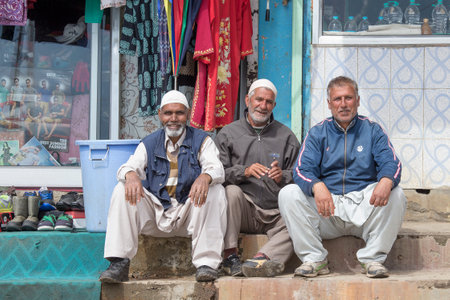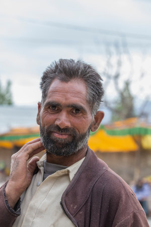 Leh, India - June 21, 2015: Poor man on the street in mountain village Leh, Ladakh region, north India, close up. Poverty is a major issue in India