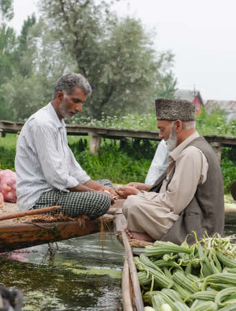 SRINAGAR , INDIA on 22 JULY 2018 morning floating vegetable market - Sellers gathered to sell their vegetables in floating market at Dal Lake, SriNagar, India