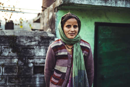 Almora, Uttrakhand - March 2 2021:- Portrait of a woman living in the rural india. Smiling into the camera. Travel portrait.