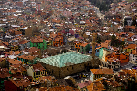 Historical buildings and a mosque in Beypazari district of Ankara. Ottoman architecture and towns background photo.