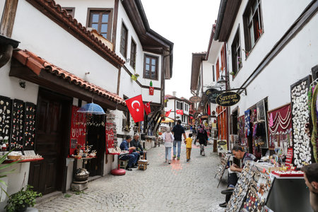 ESKISEHIR, TURKEY - SEPTEMBER 03, 2016: Old buildings in historic Odunpazari district. Odunpazari is one of the most populer touristy district with old Ottoman Buildings in Eskisehir.