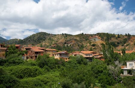 The view of the mediaeval old village of Kakopetria on the high banks between the Kargotis and Garillis Rivers on the foothills of the Troodos Mountains. Nicosia District. Cyprus