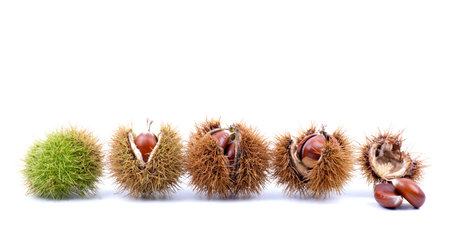 Chestnut in shell exposed on white background