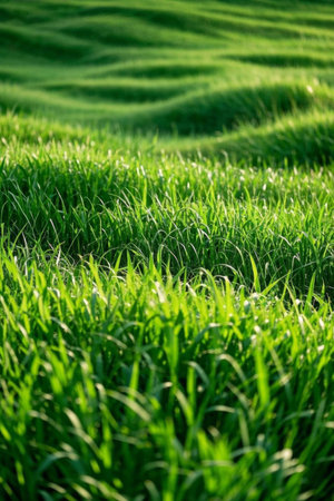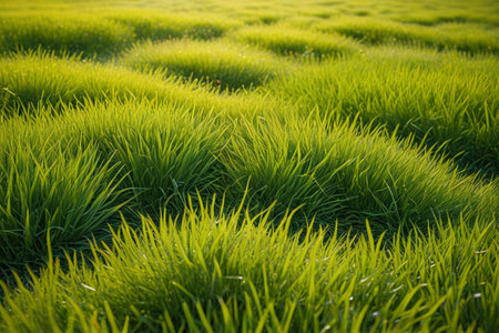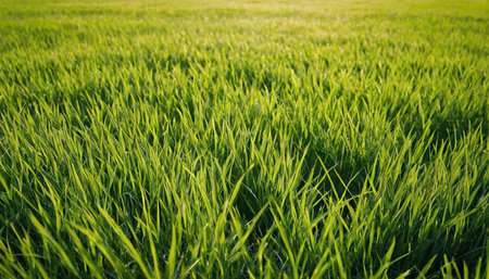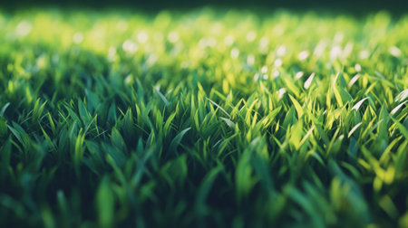 Lush green grass, vibrant turf, perfect for outdoor activities or serene landscapes, creating a refreshing and inviting atmosphere for relaxation or play.