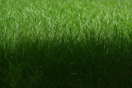 background of green dense grass blurred with narrow focus strip in the middle