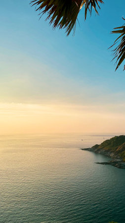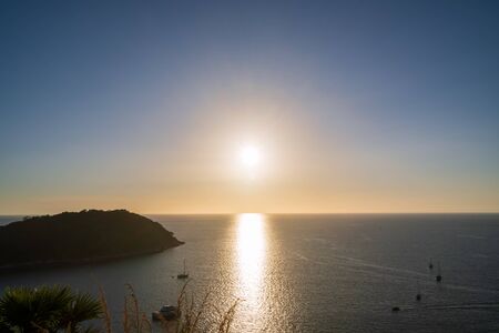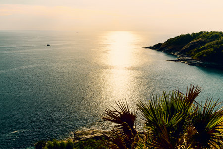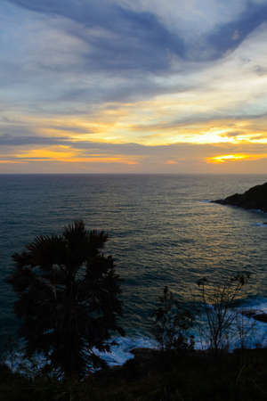 Beautiful natural sunset landscape of the coast and sea on the top view point of Promthep Cape in Phuket, Thailand