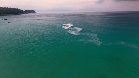 Aerial view of Amazing seashore at Phuket Thailand beautiful wave crashing on seacoast Top view sea in summer season Nature recovered Environment and Travel background.