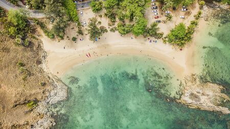 Vertical aerial view on Laem Sing beach in Phuket, Thailand
