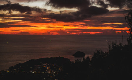Beautiful sunset on Andaman sea at Windmill View Point near Laem Promthep Cape, Phuket, Thailand