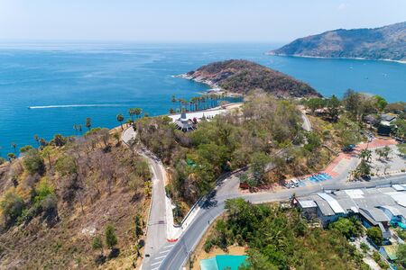 Aerial view drone shot of laem promthep cape,beautiful scenery andaman sea in summer season,phuket thailand